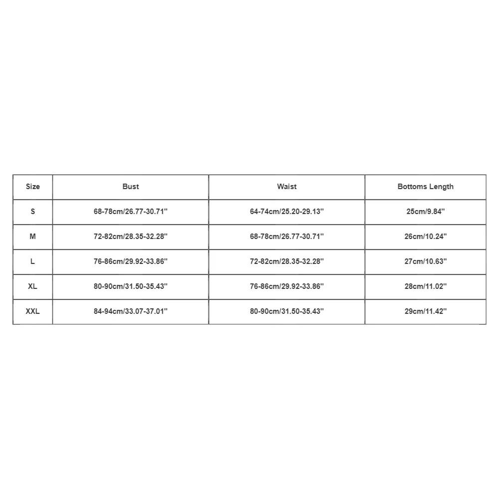 | Size:S | Bust:68-78cm/26.77-30.71'' | Waist:64-74cm/25.20-29.13'' | Bottoms Length:25cm/9.84'' |